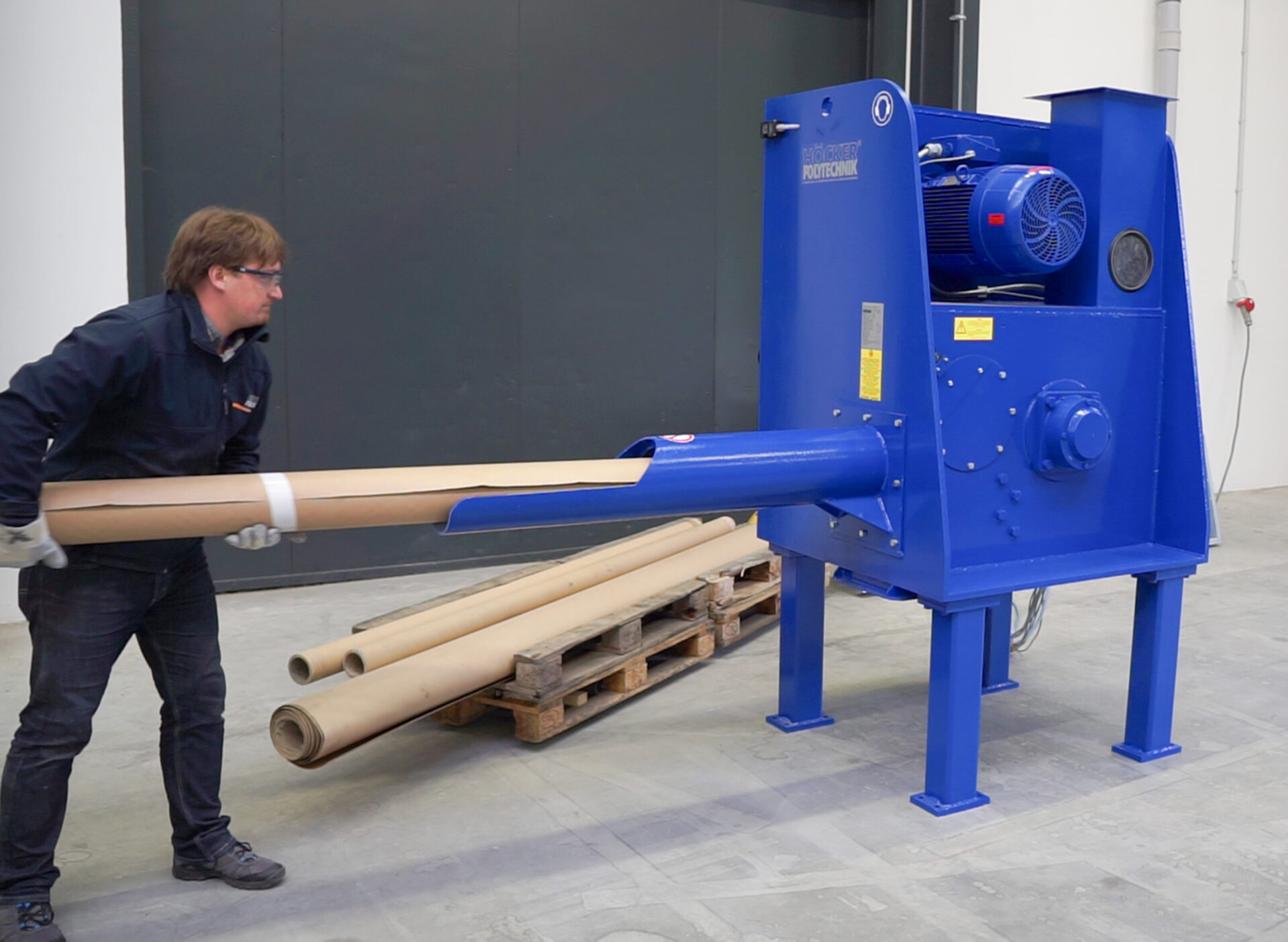 Bruno Schmitz, operations manager at Smurfit Kappa in Euskirchen, explains: “We have a powerful disposal center with a bale press and a feed with a chain conveyor belt. All maculation shieets and production residues are baled here. At the beginning, we also tried to process the cores with the existing system, but after the carriers were damaged twice and we had repairs of several thousand of euros, we realised we had to find a solution for treating the cores that was easier on the baler. We have had the PHH core shredder at work here since the beginning of 2015. The cores are shredded into palm-sized pieces and then can be processed easily without damaging our equipment. We are glad that the cores are no longer an issue for us. Within 2.5 years the investment in a core-free bale press will pay for itself.”