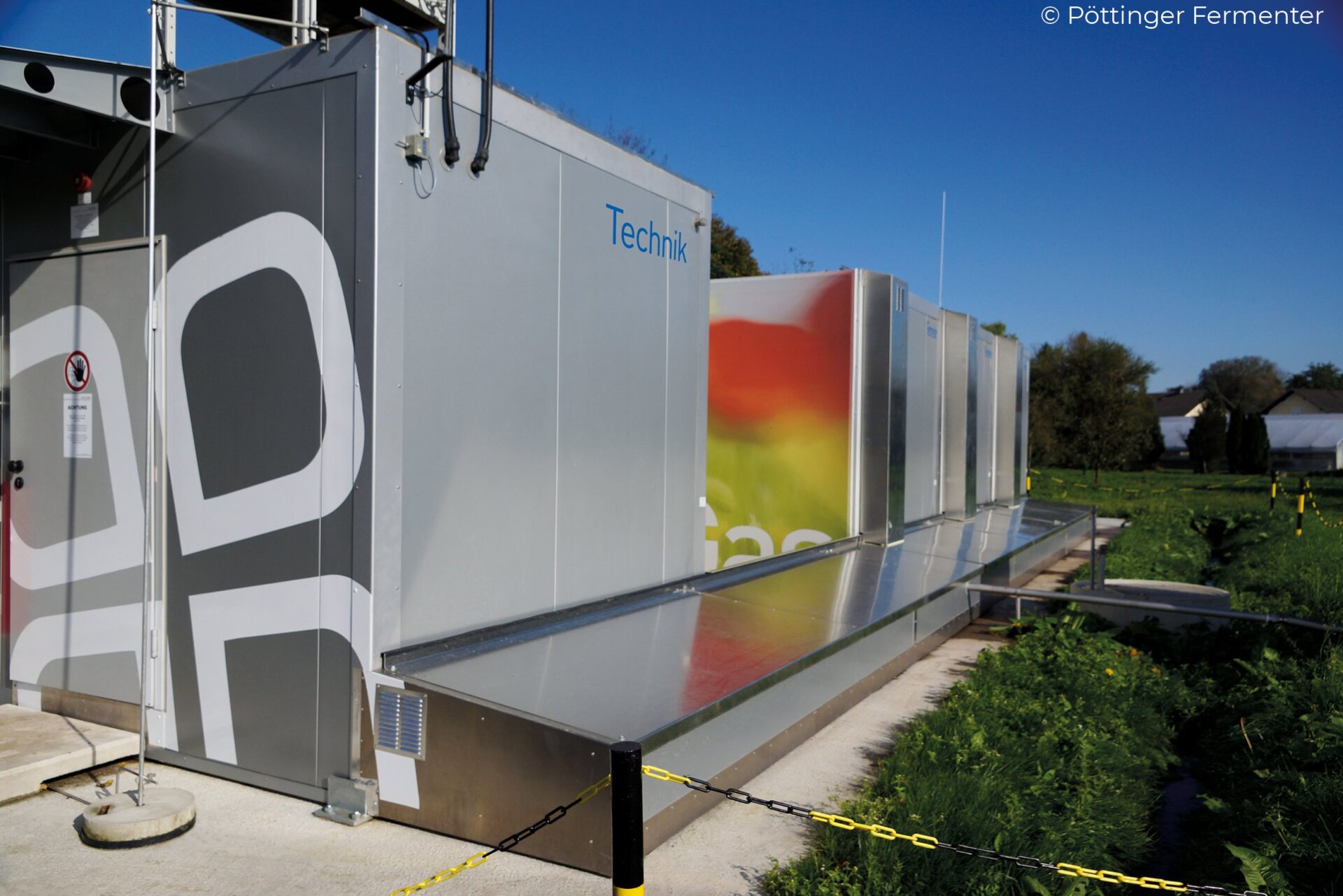 The Pöttinger Fermenter is a flexibly scalable system comprising a container box with integrated control unit and at least 3 and up to a maximum of 15 further container boxes for residue conversion. Its capacity is 58 m³ in each case. Thanks to its modular structure, the system can be adapted to individual requirements with annual capacities of 1,000 to 5,000 t. The containers are not concreted and are therefore also not tied to one location. A reduction in the output required is therefore just as quick to implement as an increase. The self-contained system inside the Fermenter boxes also means a significant reduction in odour emissions with sensitive input materials, such as leftover food, out-of-date produce and sewage sludge.