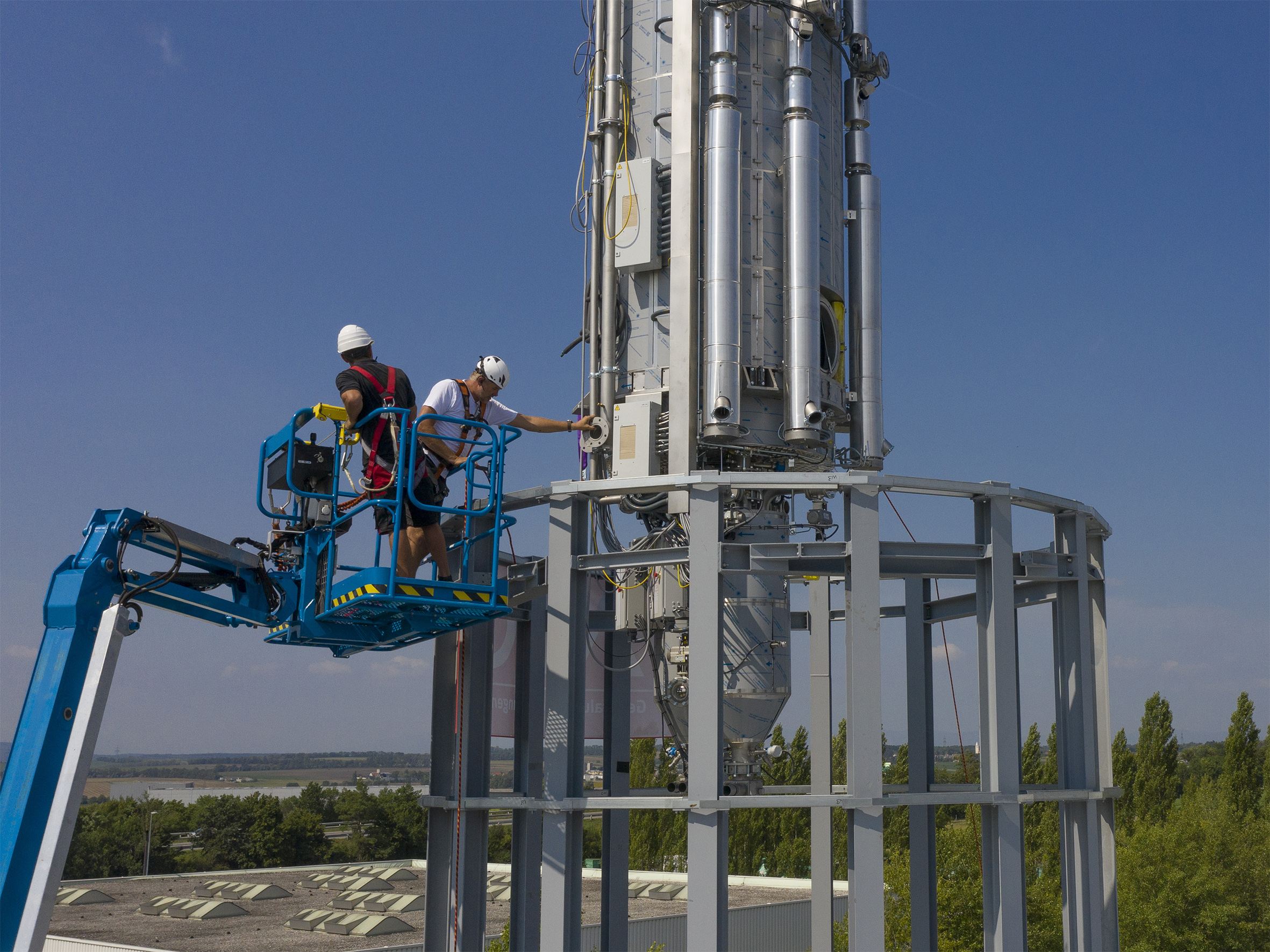 Installation of the 14 m high viscoSTAR SSP reactor. Photo: Starlinger