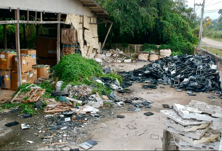 Yian Hai Electric Co. Ltd. site near Sriracha, Thailand. BAN discovered this site by installing a tracker inside electronic equipment and deploying it in Europe. Working conditions here were very poor with workers living onsite in cardboard shacks. Copyright BAN, February 2, 2018.