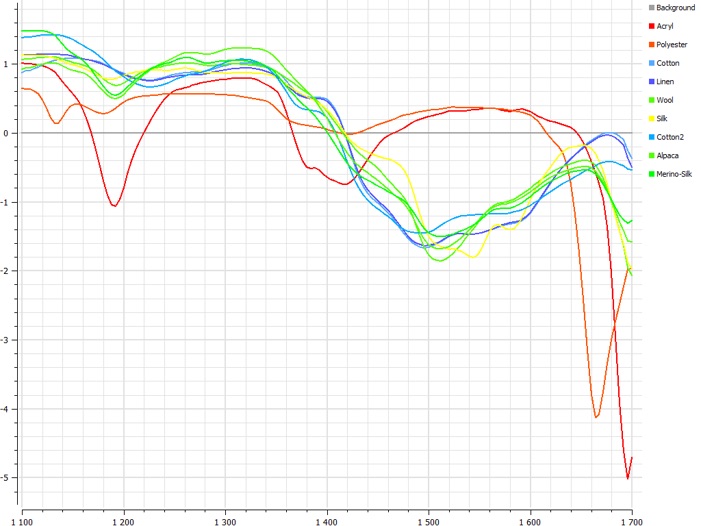 Different textiles have individual spectral characteristics that can be used to classify the fabrics.