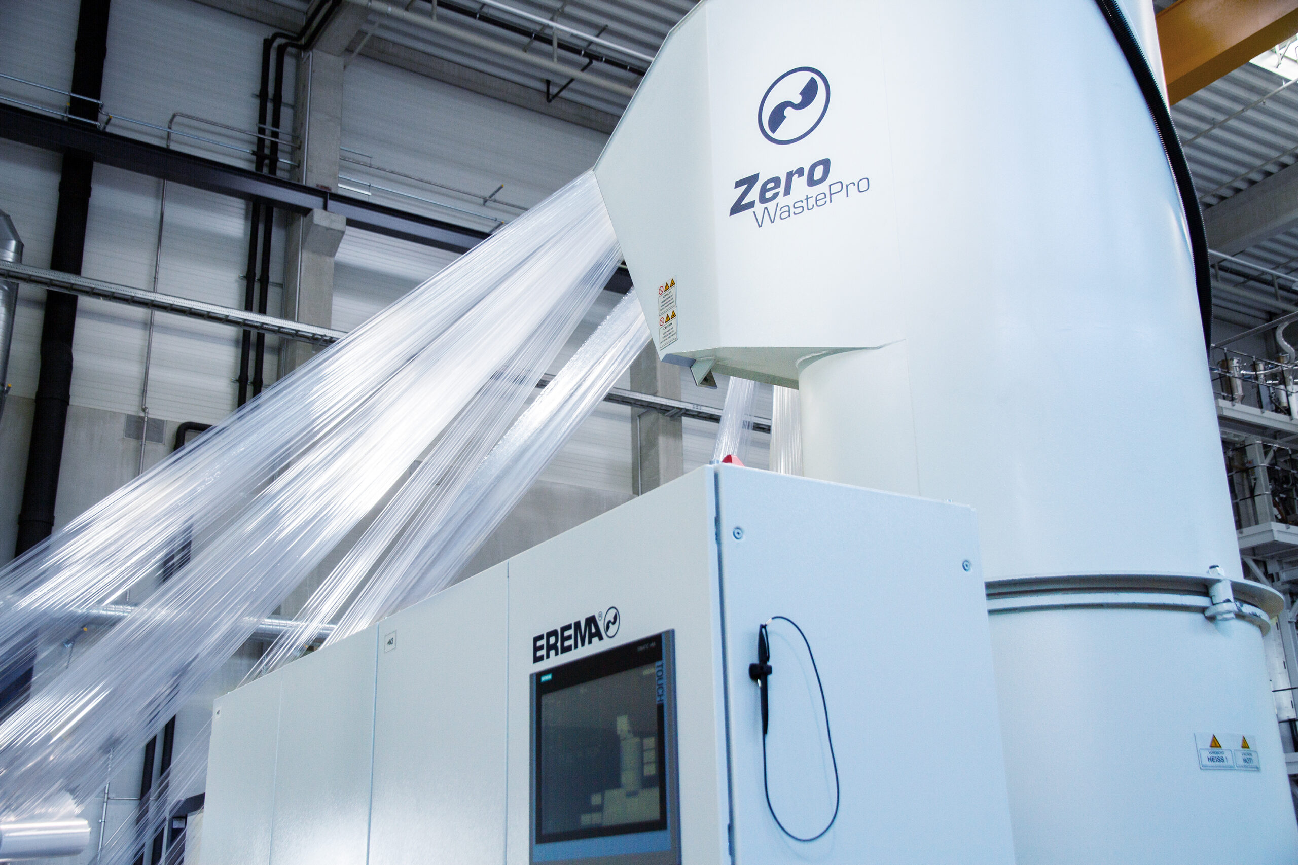 In the Vacunite system, Erema combines its Vacurema-technology with the newly patented vacuum assisted nitrogen SSP from Polymetrix. Photo credit: Erema
