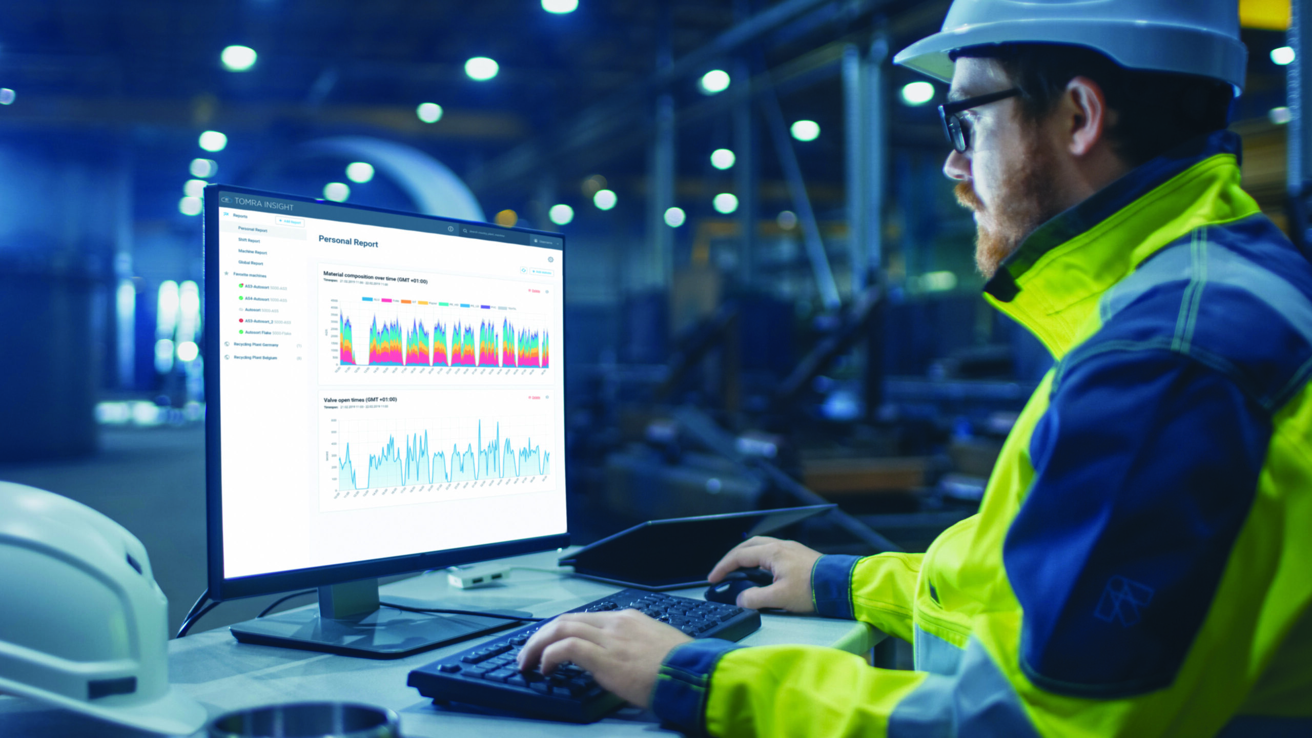 Inside the Heavy Industry Factory Industrial Engineer Works on the Personal Computer Designing Turbine/ Engine in 3D, Using CAD Program.