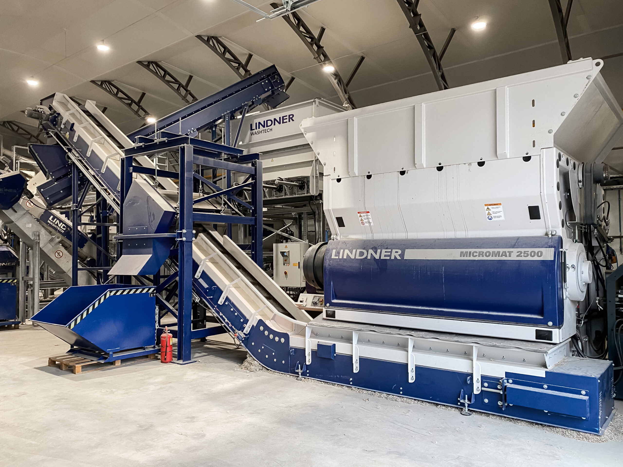 Thanks to the robust drive and the safety clutch, the Micromat series shredder is particularly powerful and resistant to non-shreddables. The Micromat’s cutting system is also specially designed for big bag shredding. Special knives and an easily adjustable counter knife ensure high productivity. Copyright: Lindner Washtech