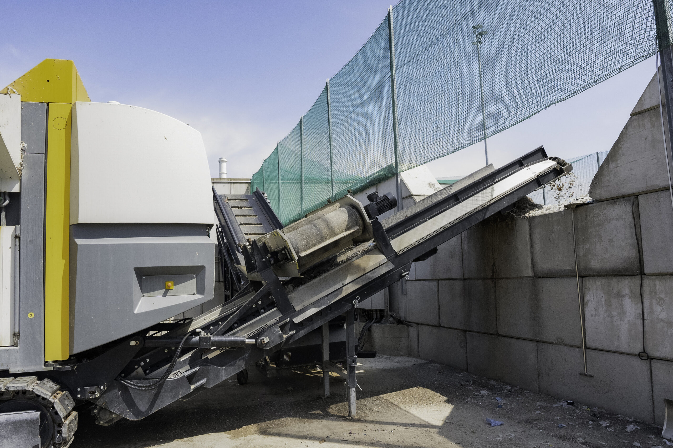 The Untha XR3000C mobil-e shreds around 25 tonnes of pulper ropes a day down to a granulate size of 50–150 mm. Copyright: Untha shredding technology GmbH