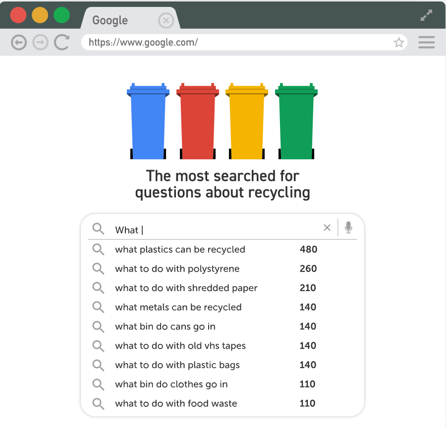 Most searched for questions about recycling (Source: Barratt Homes)