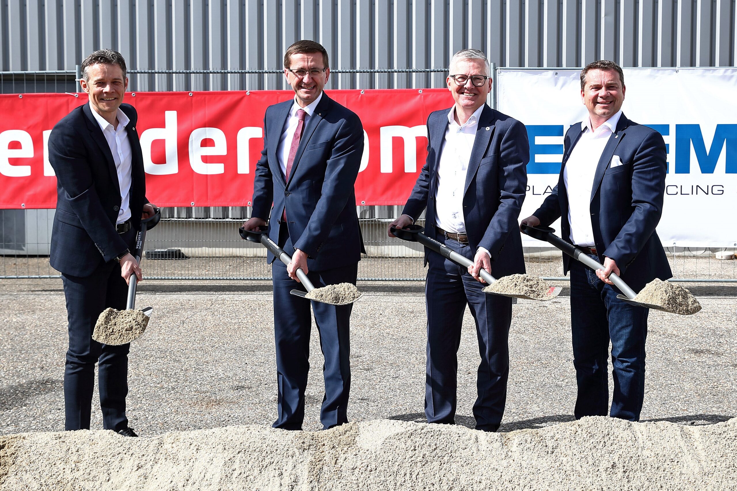 From the left: Markus Huber-Lindinger Managing Director EREMA GmbH, Markus Achleitner Upper Austria´s Minister for the Economy, Manfred Hackl CEO EREMA Group GmbH and Christian Partoll Ansfelden´s Mayor. (Copyright: Land OÖ/Kauder)